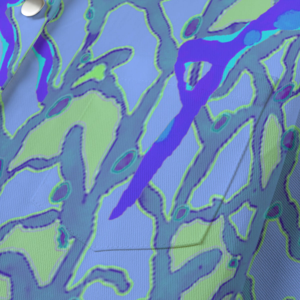 With every sway and ripple of the abstracted dancers woven into the jacket's blue-green landscape, the piece evokes both serenity and fire. It's meditative yet kinetic — a paradox made wearable.